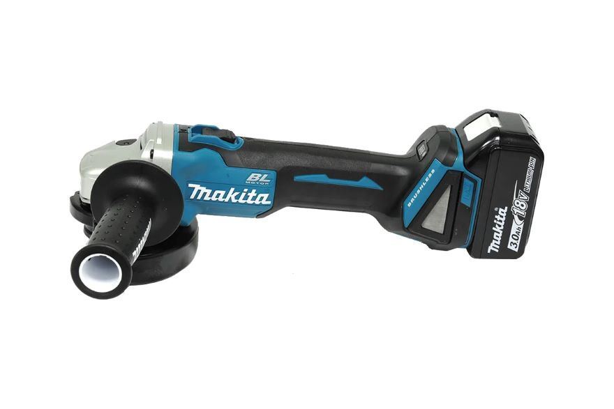 Комплектация: УШМ (болгарка), 1 аккумулятор, зарядное устройство, ключ, защитный кожух, боковая рукоятка, шлифовальный диск, кейс.